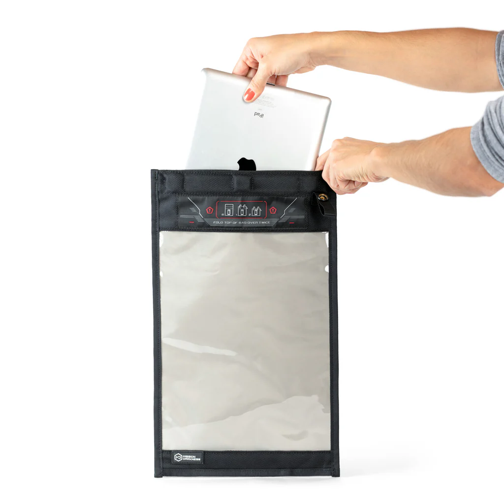 The Mission Darkness NeoLok Window Faraday Bag for Tablets blocks all wireless signals while keeping the screen visible for rapid ID, triage, and evidence handling.
